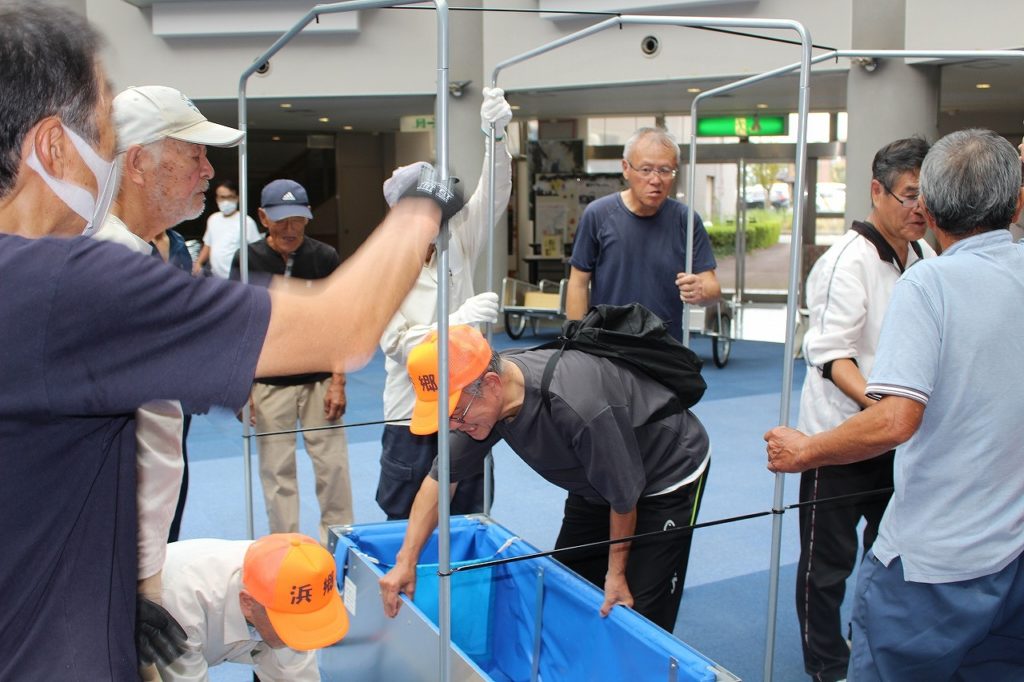 大規模災害時には、地域住民が設置及び管理が出来るように組立方法などの確認をおこないました。